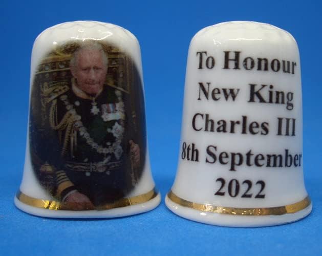 Birchcroft Dé à coudre en porcelaine pour honorer le roi Charles 111 avec boîte
