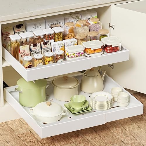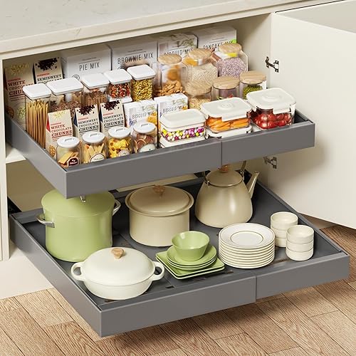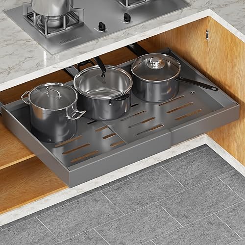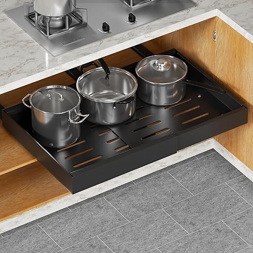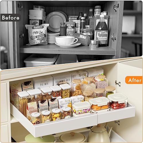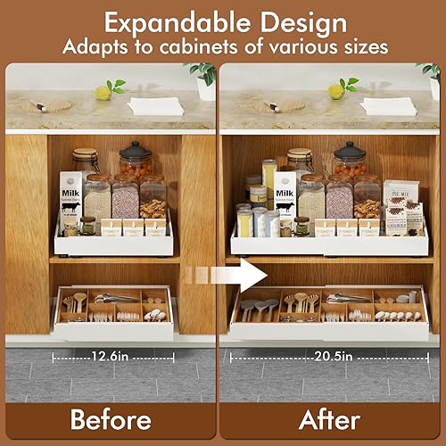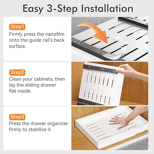 Aukimo Tiroir Coulissant Adhésif et Télescopique pour Cuisine, Largeur Réglable (32-53 cm), Sans Perçage, Tiroir Extensible Coulissant– Organisateur de Placard et Tiroirs | Gris-2 pièces