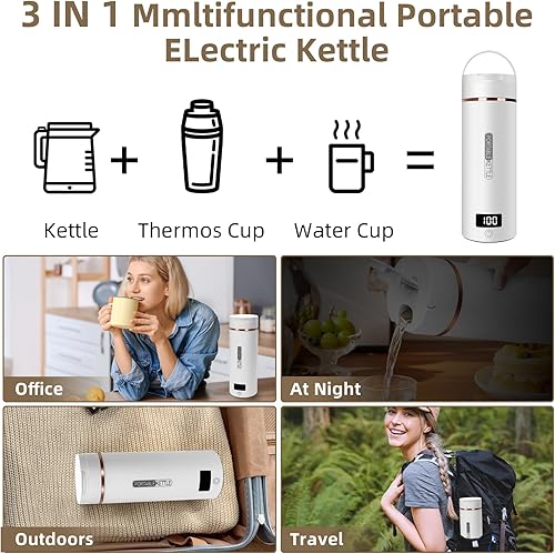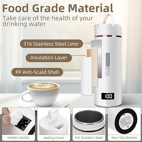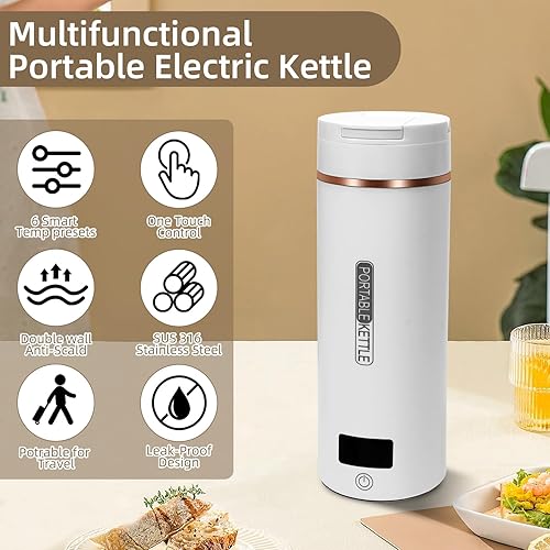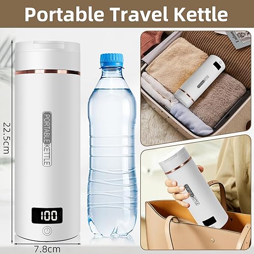Mini Bouilloire Electrique de Voyage, 400ML Bouilloire Portable de Voyage Avec 6 Réglages de Température, chauffage automatiquement arrêté, avec Inoxydable 316 pour thé, café, lait de bébé
