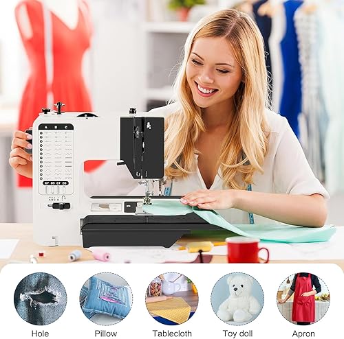Machine À Coudre Professionnelle avec Grande Table à Coudre, Machine à Coudre Portable et Polyvalente, Machine à coudre débutant avec 38 programmes de couture Réglable 2 vitesses Avec Pédales