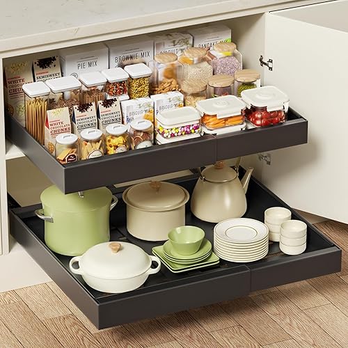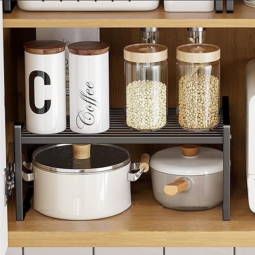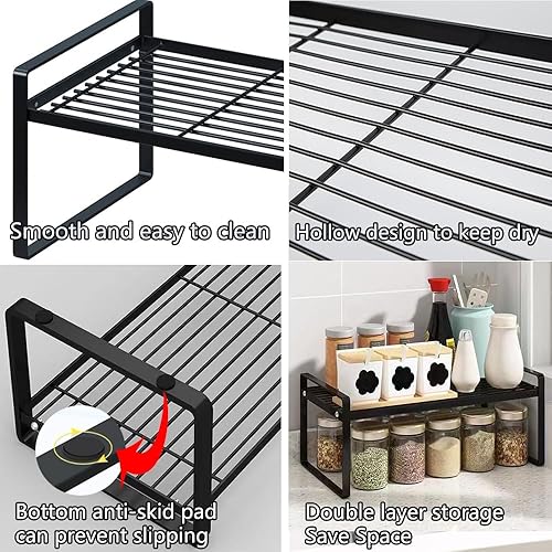 HQahnekme Étagère de Cuisine en métal,Étagère de Rangement avec Tapis antidérapant,Organiseurs de Placards,pour Placard de Cuisine/Salle de Bain/comptoirs/ustensiles. (Black)
