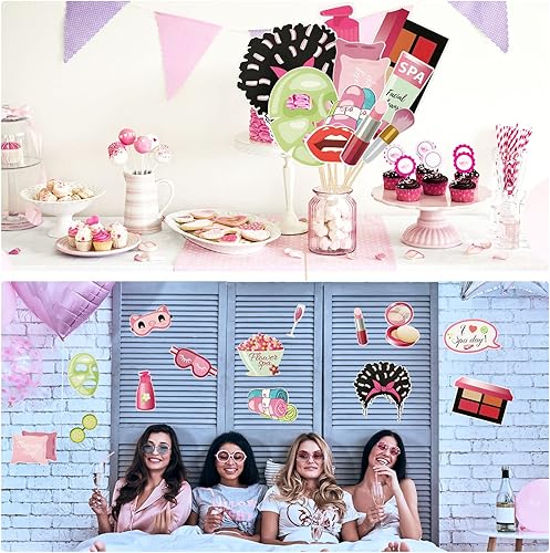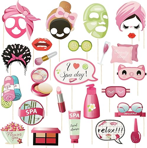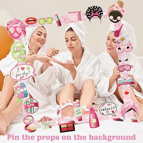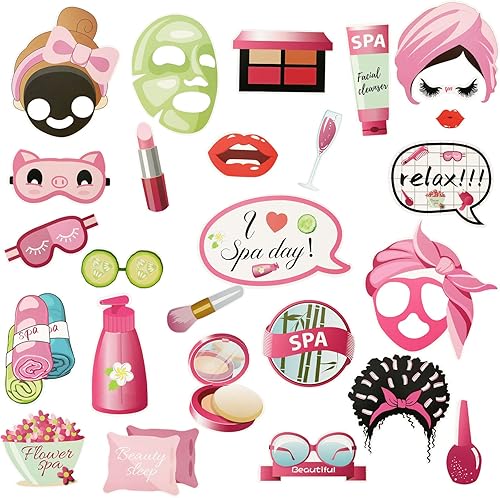 Konsait Lot de 26 accessoires de photomaton pour fête spa, fournitures de fête spa pour filles et femmes, décorations de fête spa, fournitures de fête d'anniversaire spa pour filles, décorations de