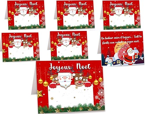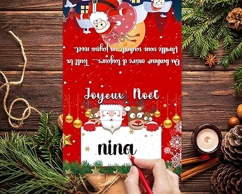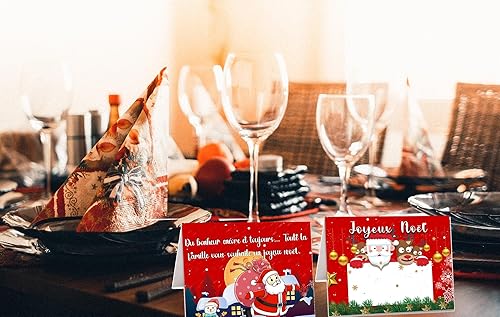 50 Marque Place de Noël Français Porte Nom Table en Papier Père Noël Arbre de Noël Cartes Porte Prénom Carte de Place Marque Table de Noël pour Décoration de Noël