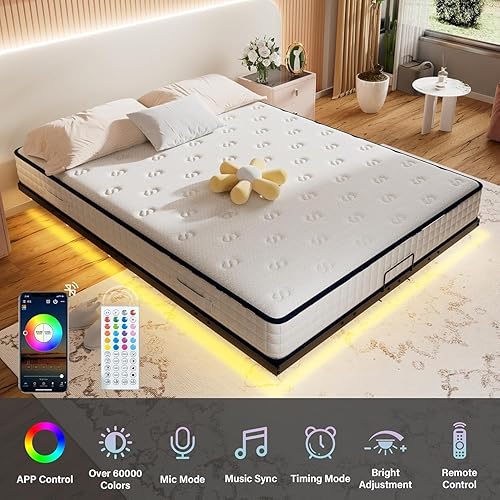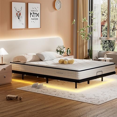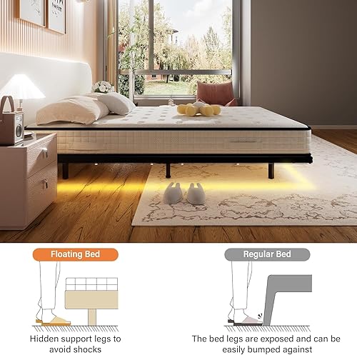 Stanew Lit 180x200 avec Sommier, 20CM Hauteur du Métal, Design Flottant avec Éclairage LED, Sommier 180x200 - Lit King Size, Cachées Jambes, Noir-sans Matelas