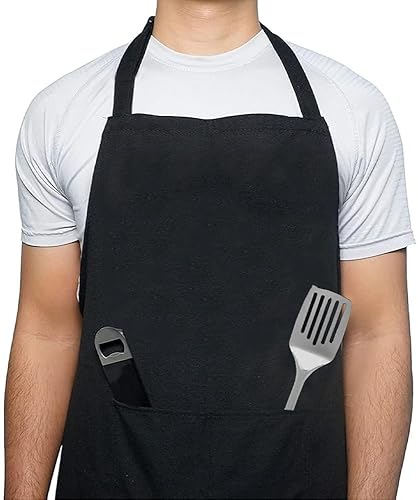 Tablier Cuisine Homme Femme, Tablier Noir Avec Poches, Tablier De Cuisine Barbecue, Professionnel Tabliers Homme Femme, Barbecue, Restaurant, Café, Jardinage, Serveurs, éCole