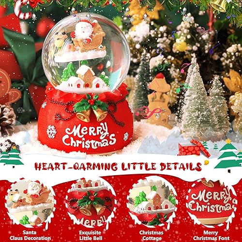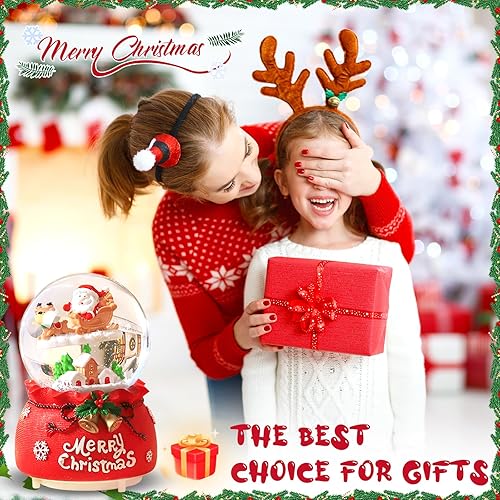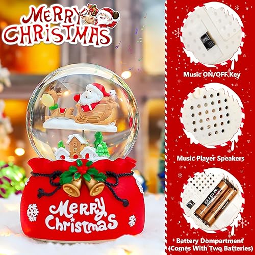 RDDAIPE Boule à Neige de Noël Musicale et Lumineuse avec Père Noël et Rennes, Ø 8.5 * 13.5cm, Tournante - Cadeau pour Enfants