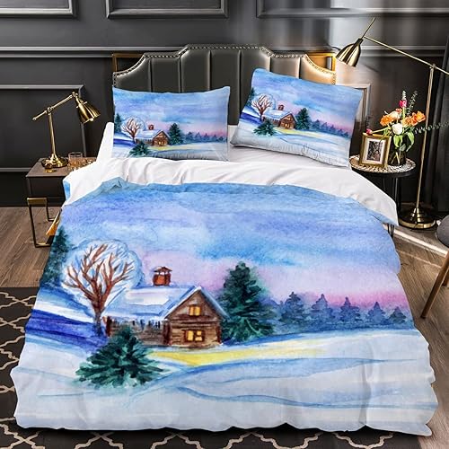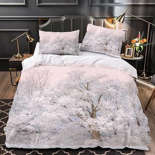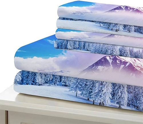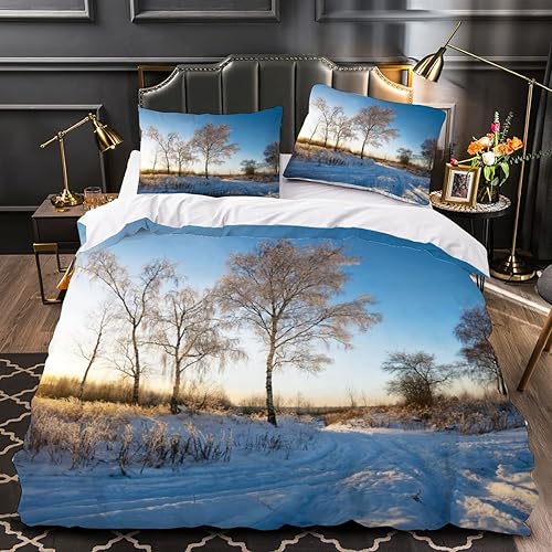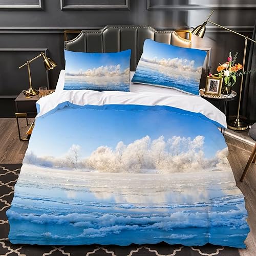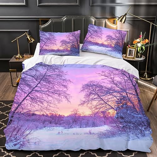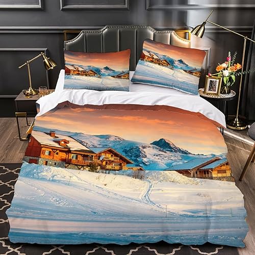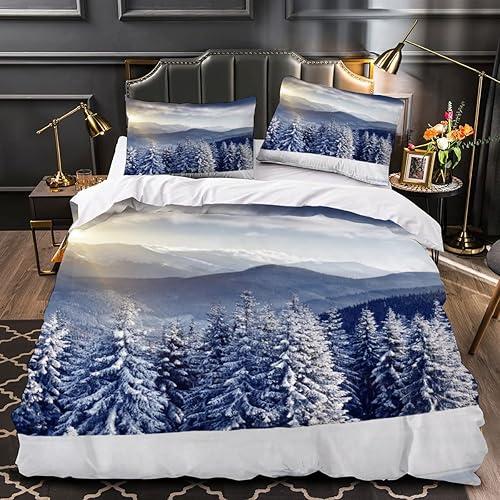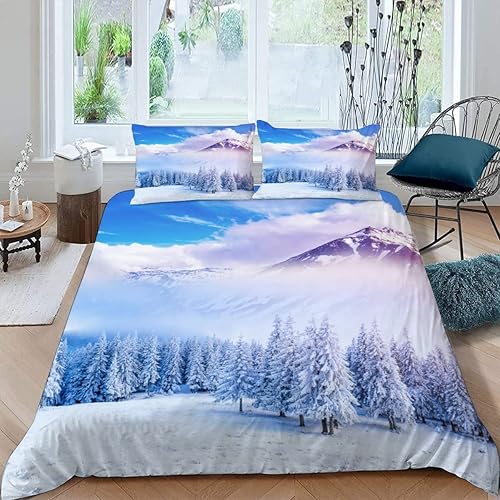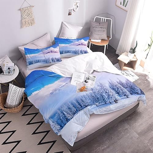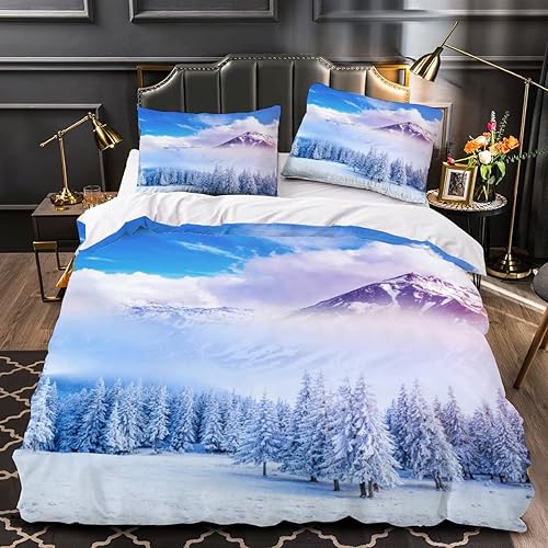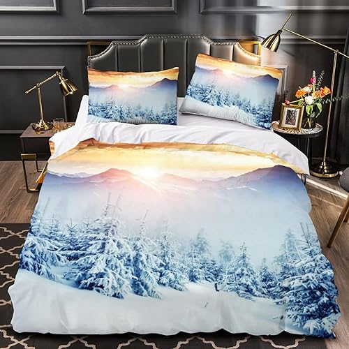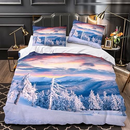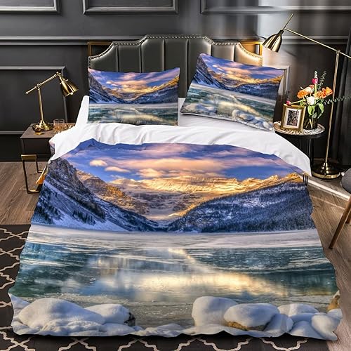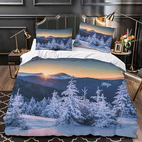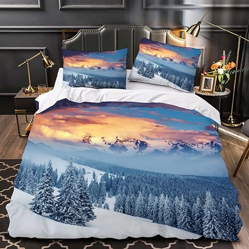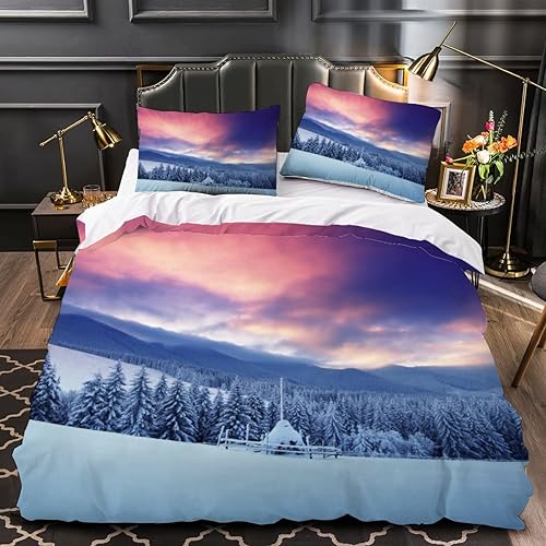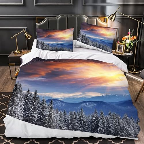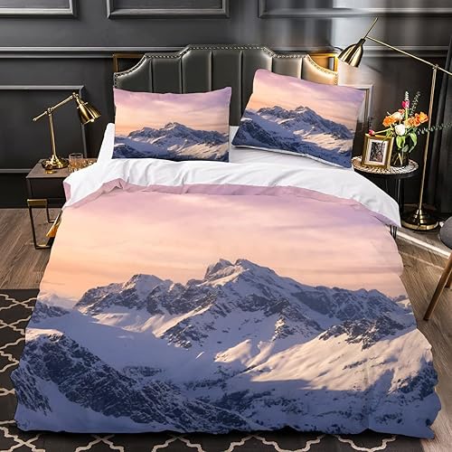 OENISE Housse de Couette 200x200 Les Montagnes Parure de Lit 2 Personnes Ado Fille Enfant 3 Pièces avec Fermeture Éclai et 2 Taie d'oreiller 3D Paysage Naturel Douce Microfibre Ensemble de Literie
