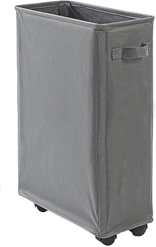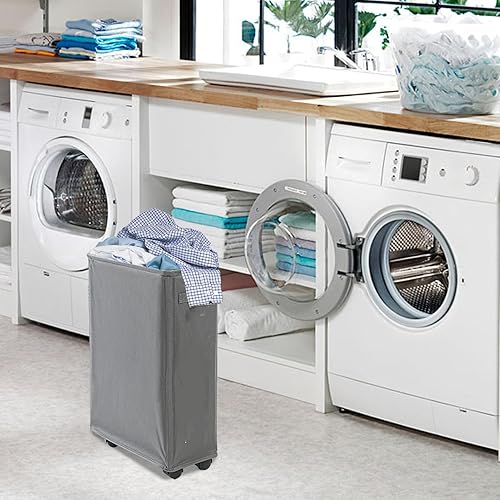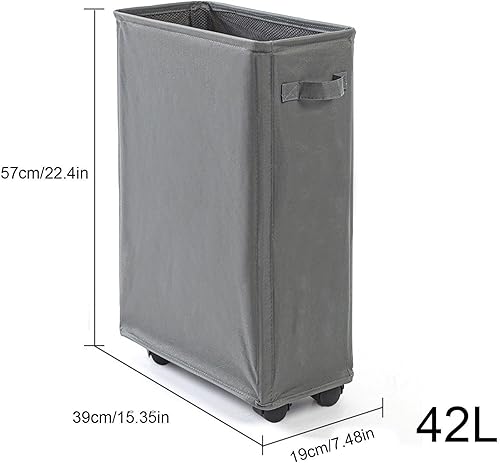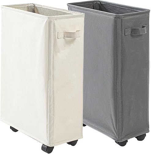 Lot de 1/2 paniers à linge – Grand panier à linge fin et pliable sur roulettes | 42 l – Panier à linge autonome d'angle étroit avec poignée – Panier de rangement pour vêtements sales pour le lavage,