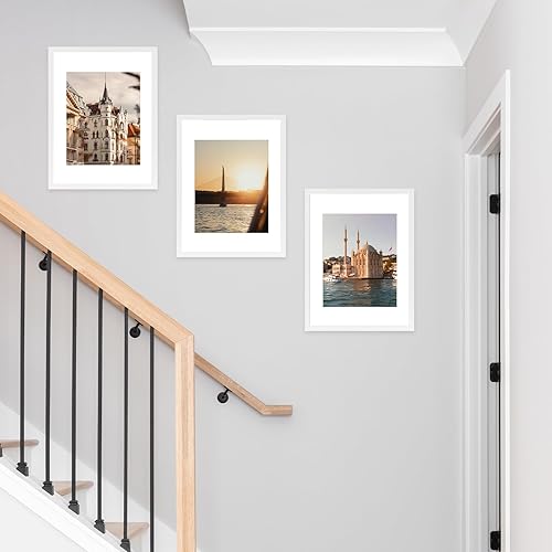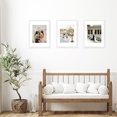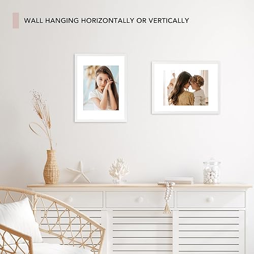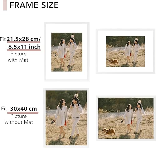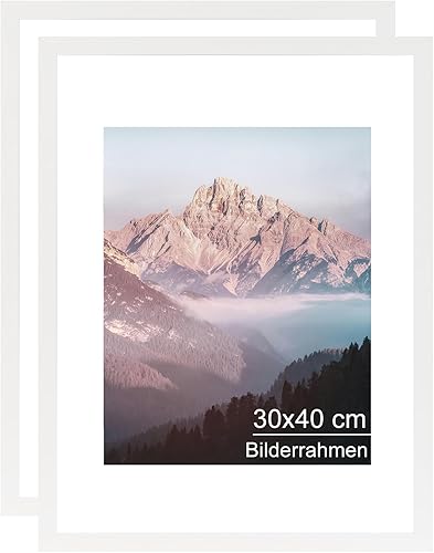 OMISHE Lot de 2 cadres photo en bois massif 30 x 40 cm - 30 x 40 cm - Blanc - 30 x 40 cm - Avec passe-partout de 21,5 x 28 cm et coque en plastique - 30 x 40 cm - À suspendre - Blanc