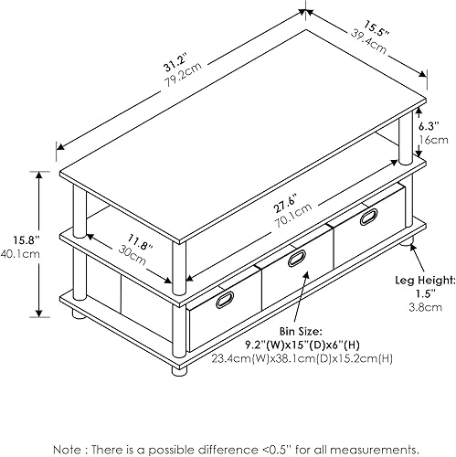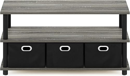 Furinno Table Basse avec Tiroirs Poubelles, Bois d'ingénierie, Chêne Français/Noir/Noir, Frans Turn-N-Tube