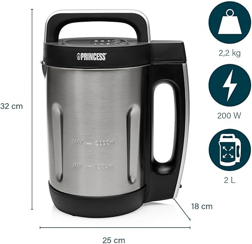 Cuiseur à soupe en acier inoxydable pour 2 litres de soupe, smoothies et sauces - 6 programmes de cuisson