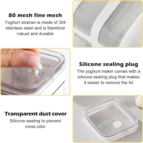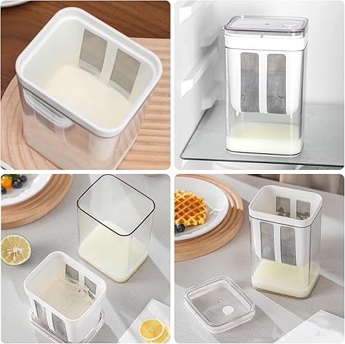 Machine à fromage frais, passoire à yaourt 1100 ml avec couvercle, séparateur de lactosérum, tamis à filtre fin réutilisable, passoire à yaourt à mailles fines, yaourtière pour lait, jus, accessoires