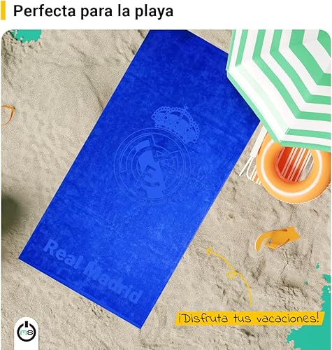 ms móvil shop Grande serviette officielle R Madrid bleue - Motif exclusif avec blason du club - Idéale pour la plage et la piscine - Dimensions 70 x 140 cm - 100 % coton - Produit officiel pour fans