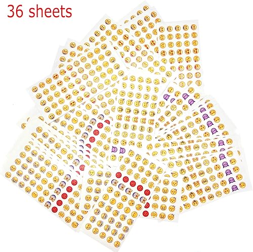 JZK Lot de 36 feuilles d'autocollants émoticônes jaunes pour mur, ordinateur portable, décoration de fête et récompenses pour enfants