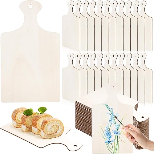 Lot de 60 mini planches à découper en bois avec poignée, petites planches à charcuterie en bois brut vierge pour bricolage, cuisine, service de légumes, décoration (24 x 14 cm)