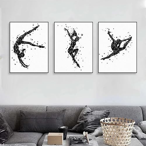 LTjiajuypd Affiches aquarelles colorées représentant une fille gymnaste, impressions sur toile abstraites, art mural nordique, décoration d'intérieur, 60 x 90 cm, 3 pièces, sans cadre