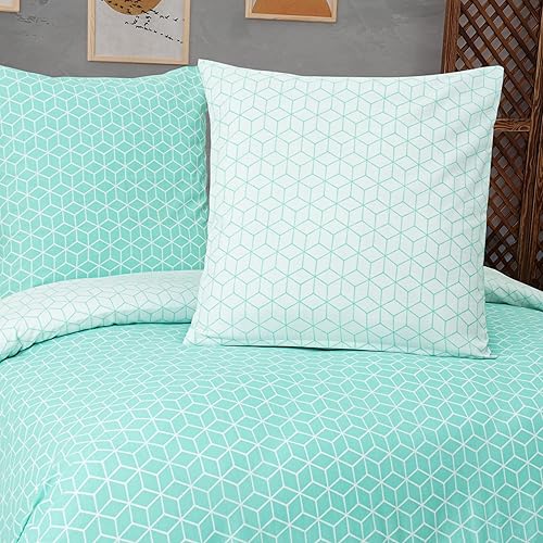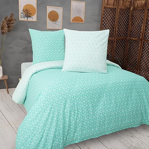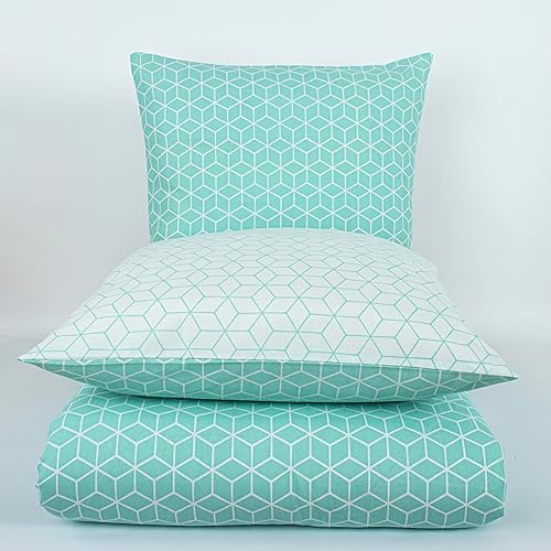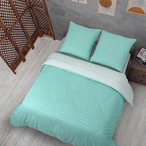 Vency Housse de Couette 220x240 3-Pièces Turquoise - Oeko-TEX 80% Coton & 20% Polyester, 1x Housse de Couette avec Fermeture éclair + 2X taies d'oreiller enveloppe de 65x65 cm, Modèle Puzzle