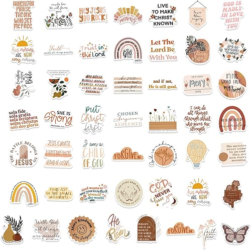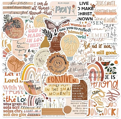 Lot de 100 autocollants chrétiens, autocollants bohème, citations inspirantes, autocollants en vinyle, autocollants de bible, autocollants cadeaux chrétiens pour décorer les journaux, les bagages,