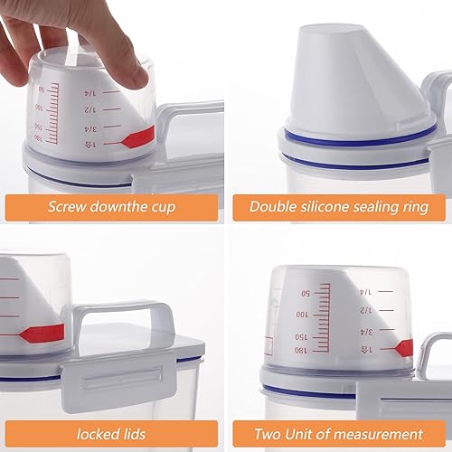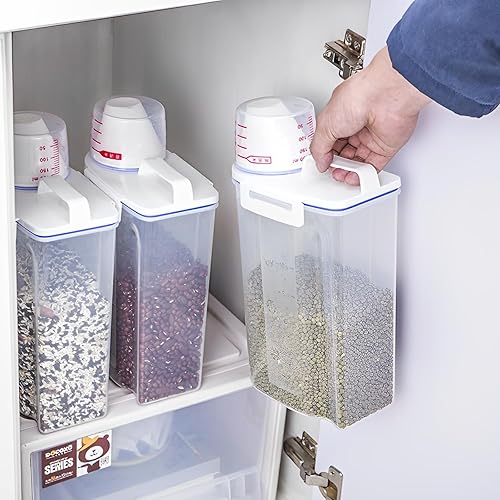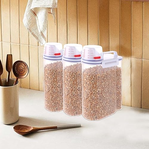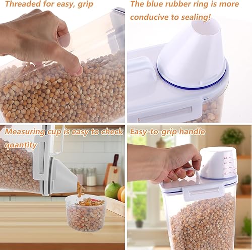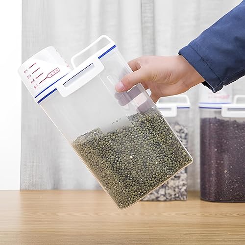 DAJAVE Lot de 4 boîtes de rangement de cuisine de 2,5 l avec couvercle et poignée, boîte de rangement hermétique avec verre doseur, nourriture sèche, récipient à riz, boîte de conservation