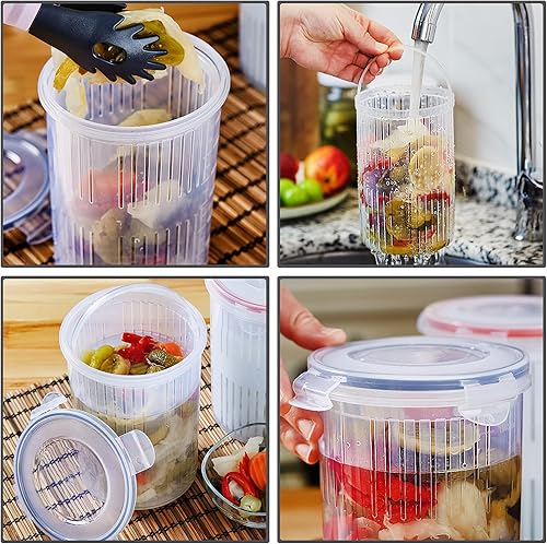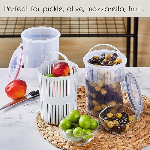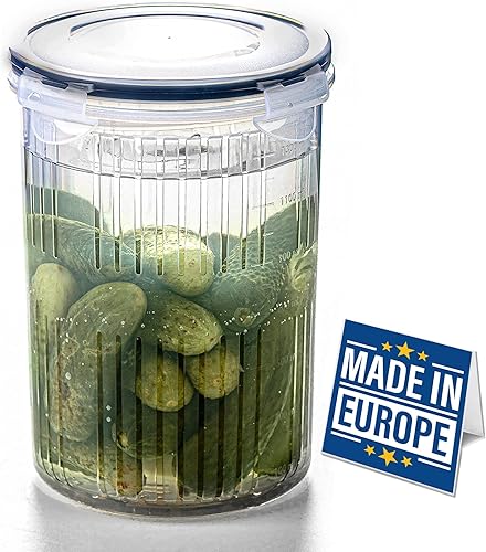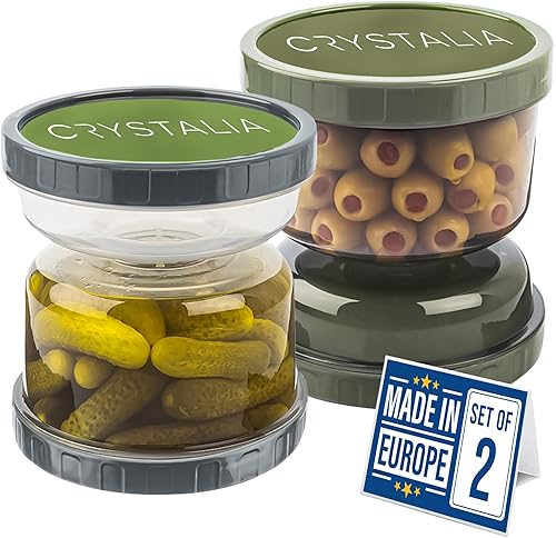 CRYSTALIA Pot Cornichon Retournable, 1000ml, Lot de 2, 100% SANS BPA Bocal a Cornichons Retournable, Bocal Cornichon Sablier, Pot Olives Retournable, Boite Cornichon Reversible, Hourglass Pickle Jar