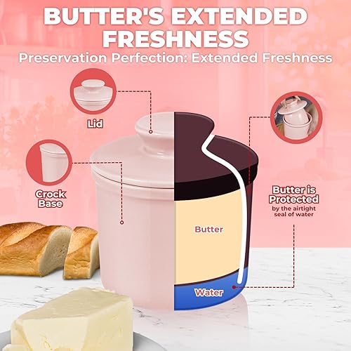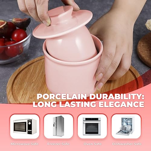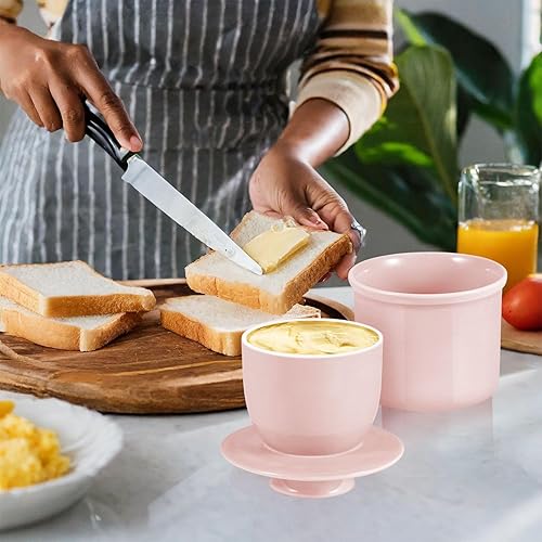 Flexzion Beurrier en porcelaine avec couvercle, beurrier français avec couvercle, plateau de table à tartiner doux et doux, porte-beurre scellé à l'eau douce, collection rétro, décoration de ferme