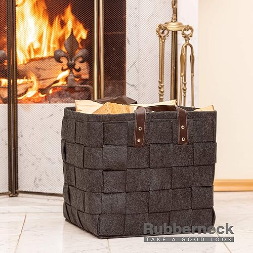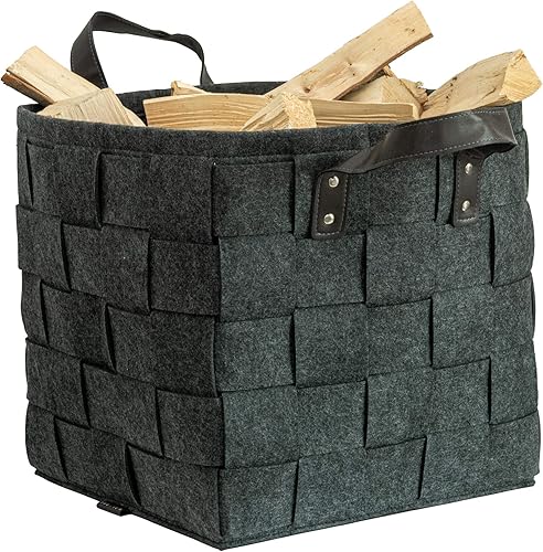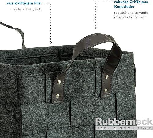 Rubberneck Panier en Feutre avec Poignées en Cuir Synthétique - Rangement pour Bois, Journaux, Jouets - 33 x 33 x 35 cm, Gris Anthracite