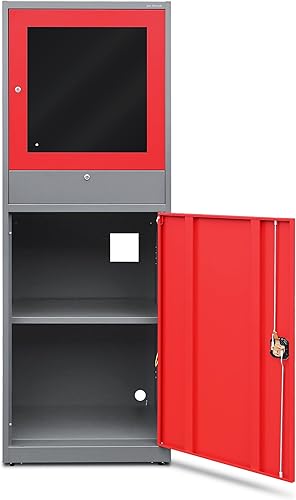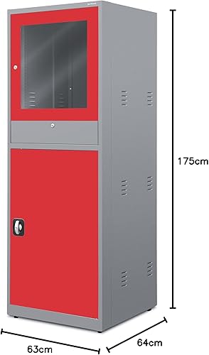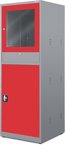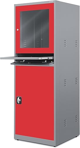 Jan Nowak Poste de Travail Informatique Armoire PC Armoire Informatique avec tiroir pour Atelier Entrepôt Métal 175 cm x 64 cm x 63 cm (Anthracite-Rouge)