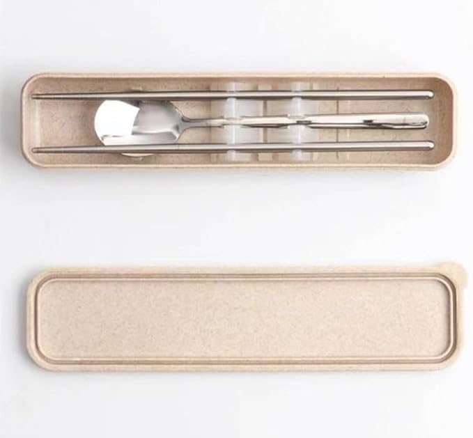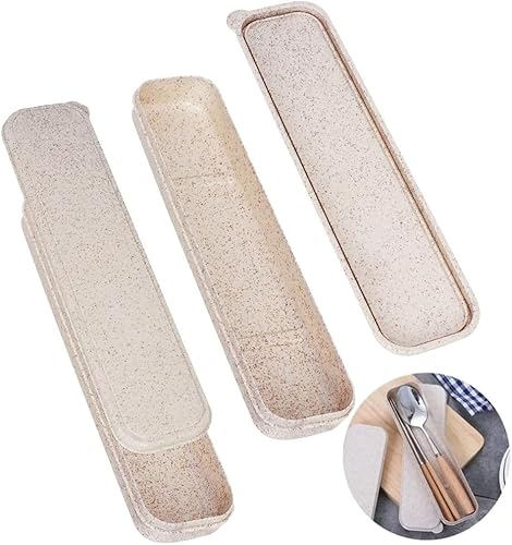 CHUANGOU 2PCS Boite a Couvert boîte de rangement portable pour couverts, Étui à couverts pour transporter une cuillère, un couteau, une fourchette,baguettes, Facile à nettoyer, Beige