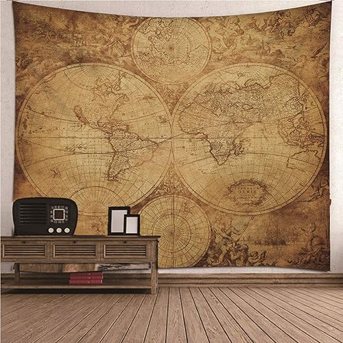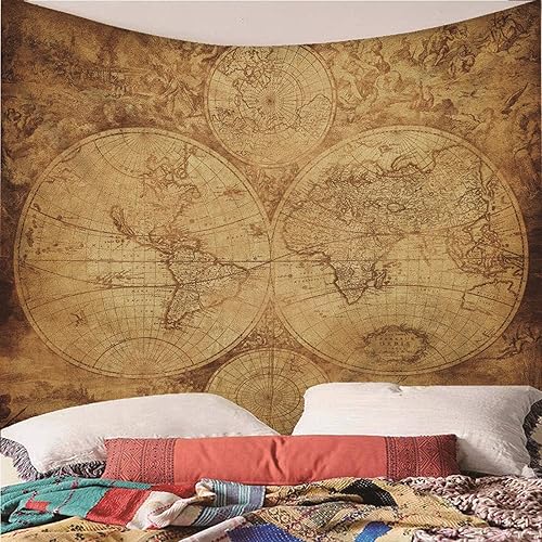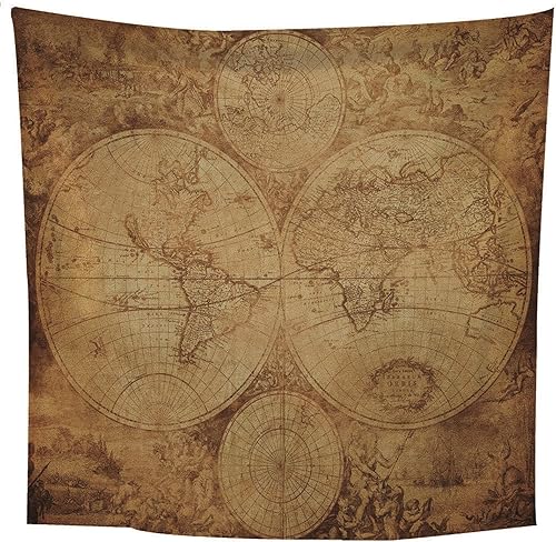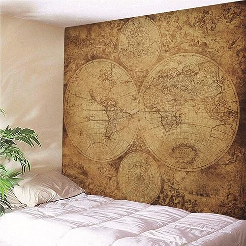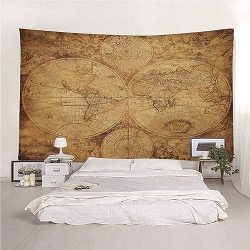Daesar Tissu Mural Decoratif, Décoration de Chambre Vintage Modèle de Carte Vintage Serviette de Plage Géante 210x140CM Marron Couverture Lit Polyester