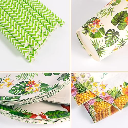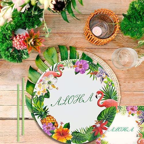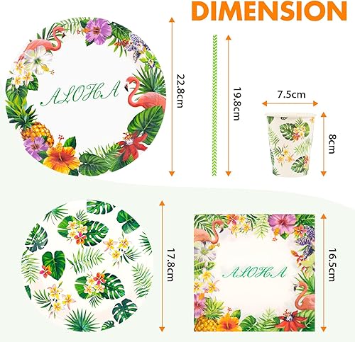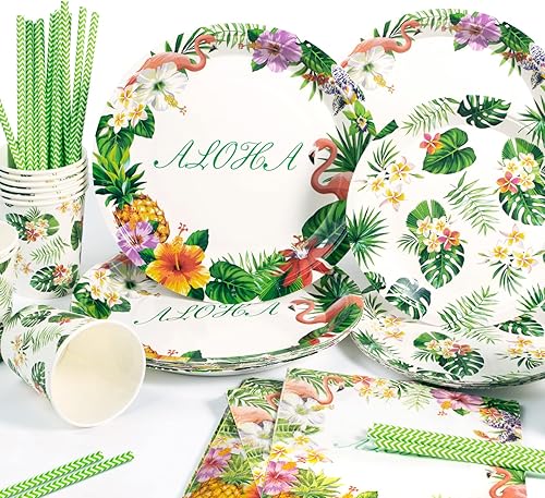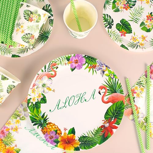 Yidaxing Vaisselle de Hawaïenne, Vaisselle de Fête Tropicales Assiette Carton Serviette en Papier Gobelet Paille pour Thème Flamant Hawaiian Tropicale Fournitures Fête