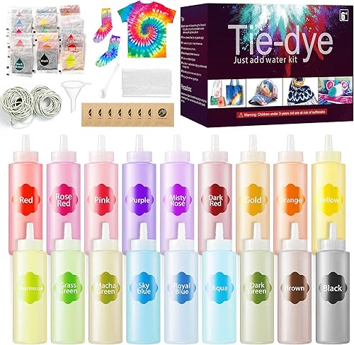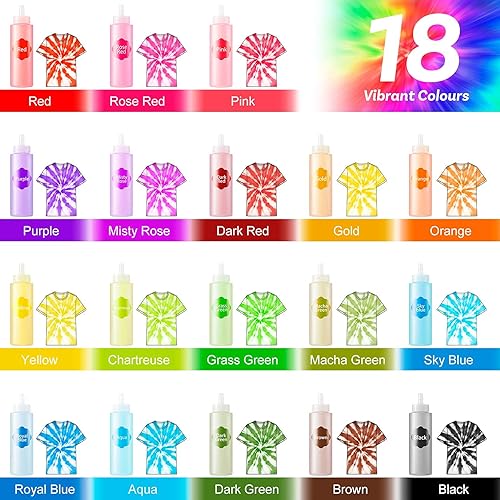 URBZUE Tie Dye Kit, 18 Couleurs Teinture Textile Peinture 210 pcs Kits, DIY Dye Kits pour Teindre Des Tissus, Des Activités D'art Créatif et Artisanal pour Enfants et Adultes
