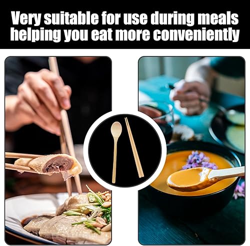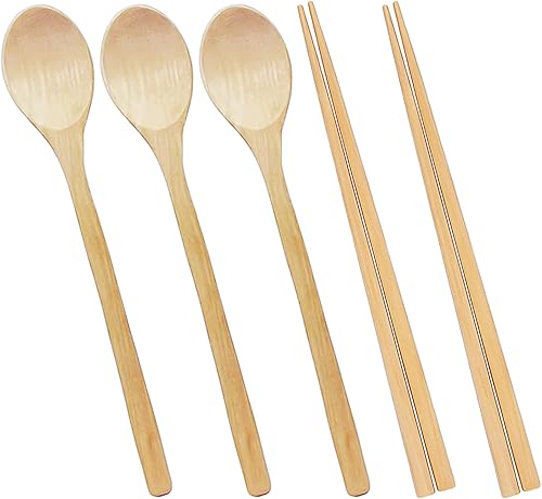 Lot de 3 cuillères en bois avec manche long, 2 paires de baguettes et ustensiles de cuisine pour la cuisson
