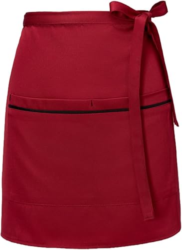 Azonelife 1 Pièce Court Tablier Taille, Durable Patisserie Chef Tablier, Demi Tablier de Cuisine avec 2 Poches, Barbecue Barman Serveur Tablier pour Café Bar Restaurant Boulangerie
