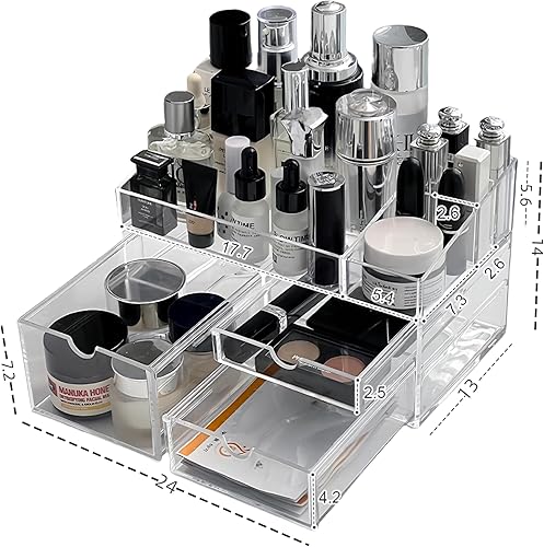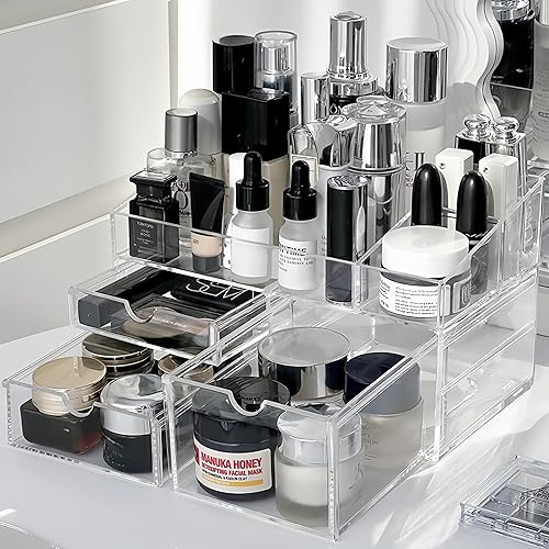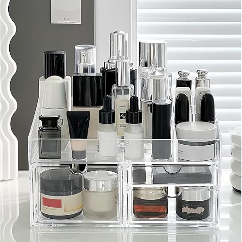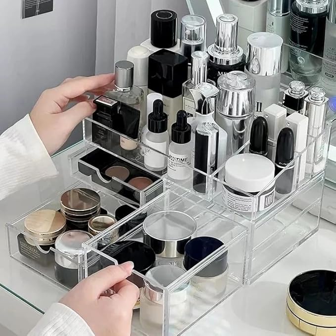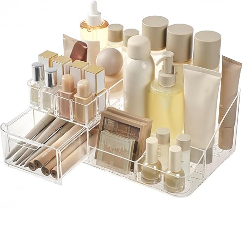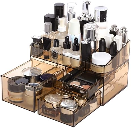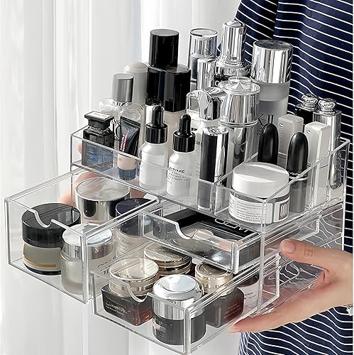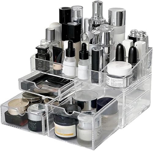 SLHEQING Rangement Maquillage, Organisateur Maquillage avec 3Tiroirs, Rangement Skincare en Plastique, Organisateur Salle de Bain pour Rouges à Lèvres, Fards, Crèmes, Pinceaux, Parfums