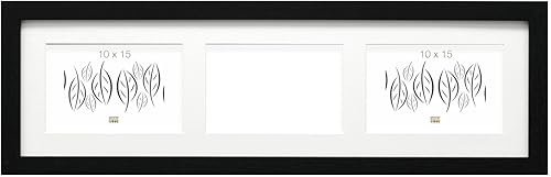 Deknudt Frames Cadre photo avec passe-partout pour 3 photos 10x15cm - Noir - Bois MDF - Multivue - Collage - pour accrocher ou poser - 18x56cm - S66KC3 10x15