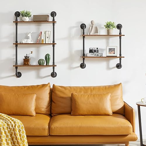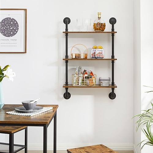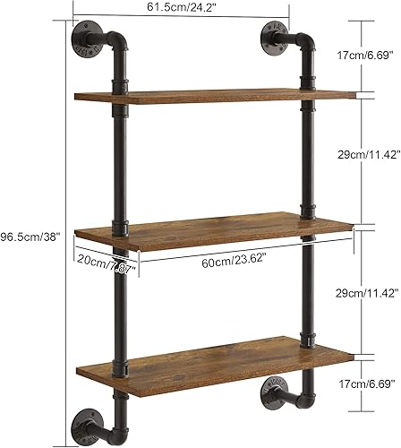 YMYNY Support Mural, Fixation Murale à 3 Niveaux, Style Industriel, Support de Tuyaux en Fer, Rangement, Étagère Flottante pour Cuisine, Bureau, Salle de Bains, Salon, Chambre HD-HRF-TM003