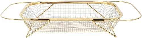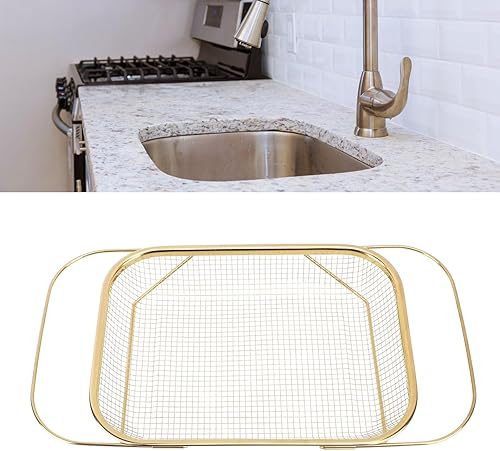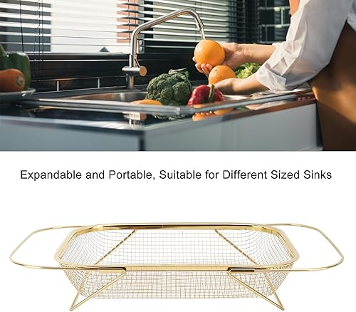 Passoire d'évier de cuisine en acier inoxydable avec poignées extensibles pour égoutter la cuisine (doré)