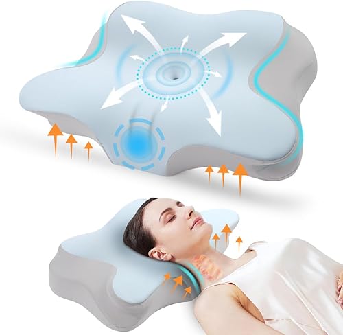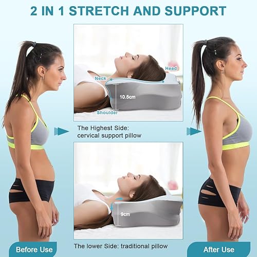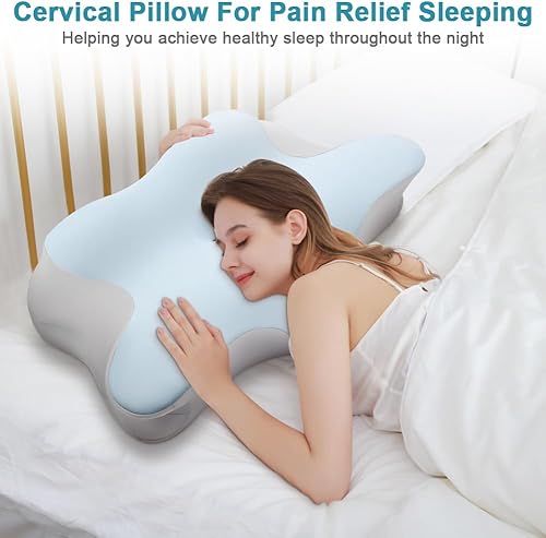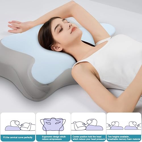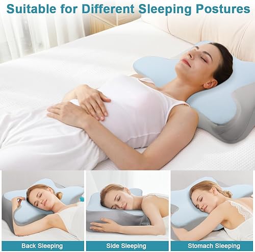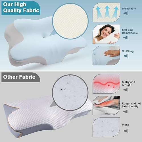 OSDUE Coussin Oreiller Ergonomique Cervical Confortable SOYA Oreiller Memoire Forme Oreiller Cervicales Douloureuses Soulagement, Convient au Dormeurs sur Cou, Côté, Dos et Ventre