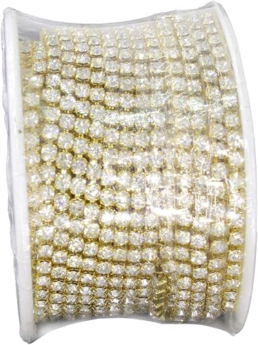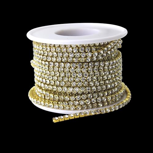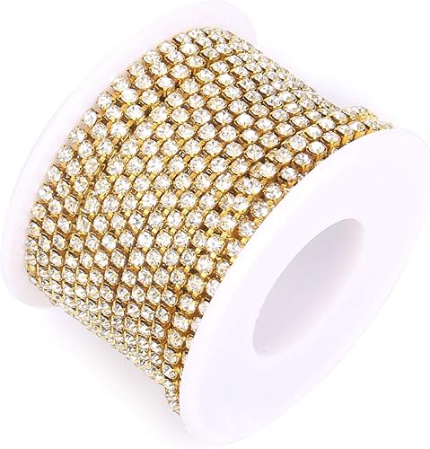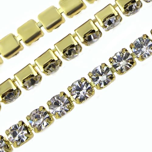 Chaîne de strass en crista, 10 m 3 mm Clair cristal strass Chaîne fermer Coupez Tasse Chaîne Bulk pour l'artisanat Bijoux doré