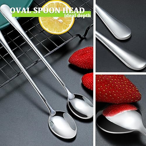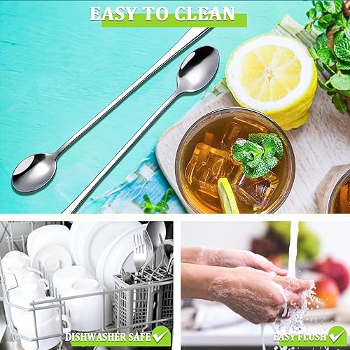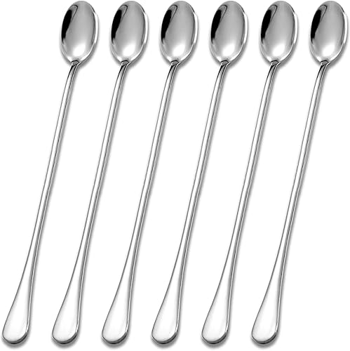 Lot de 6 cuillères à thé glacé à long manche en acier inoxydable de 22,9 cm - Touilleur, Cuillère Cuisine - Pour mélanger les cocktails, le café, la crème glacée, le bar, les cocktails - Argenté