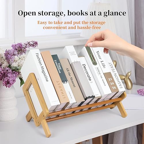 aichilra Bibliothèque inclinable en bois, étagère de bureau, support de présentation, petit support de table incliné pour CD/magazines/livres (50 cm)