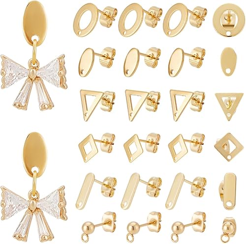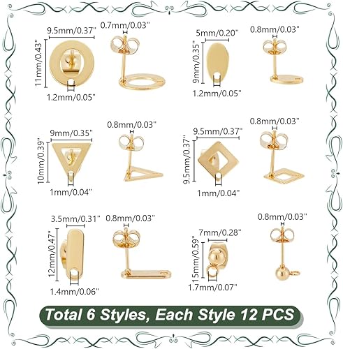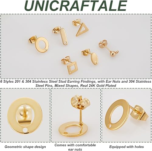 UNICRAFTALE 72pcs 6 styles Clou Boucles d'oreilles Plaqué Or 24 Carats Boucle D'oreilles Rond Tige Boucles d'oreilles avec écrous d'Oreilles Fermoir Boucles D'oreilles pour Fabrication de Bijoux