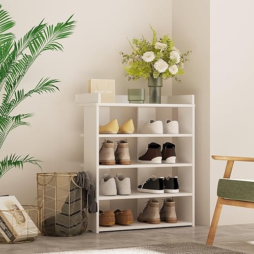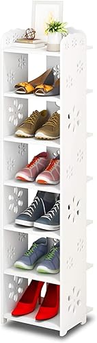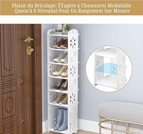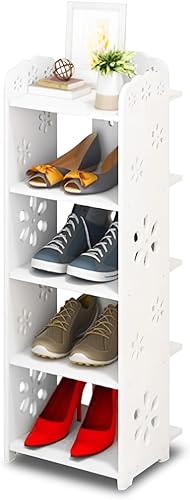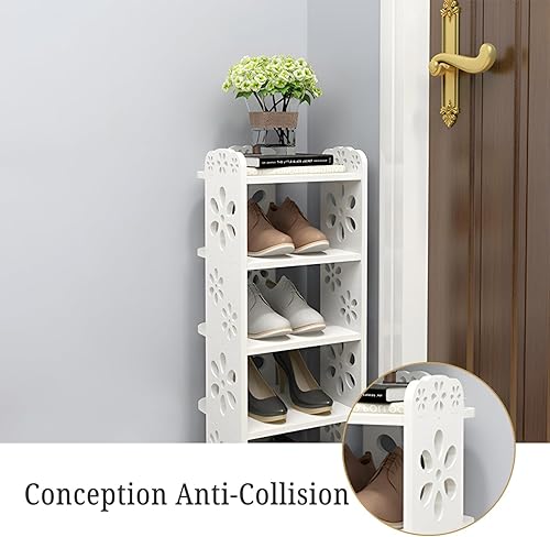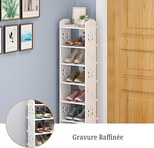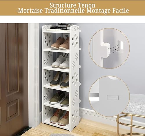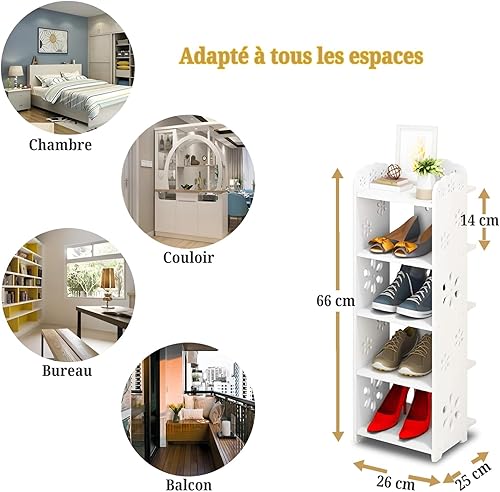 Étagère à Chaussures Driepx à Motifs Ajourés, 5 Niveaux (26 x 25 x 66 cm) – Design Élégant pour 4 Paires + Espace Déco, Montage sans Outil