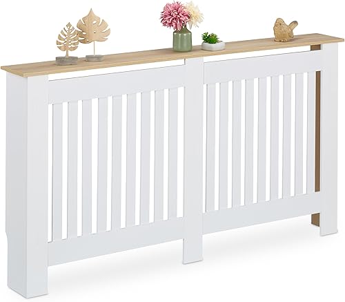 Relaxdays Cache-radiateur, Design Moderne, Tablette Pratique, en MDF, H x L x P : 83 x 152 x 19 cm, Blanc