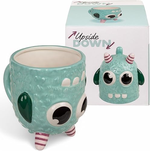 Tasse à café avec anse - Tasse à café - Tasse à thé - Upside-Down-Mug - Tasse à tête baissée - En céramique - Environ 400 ml (bleu monstre)