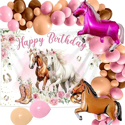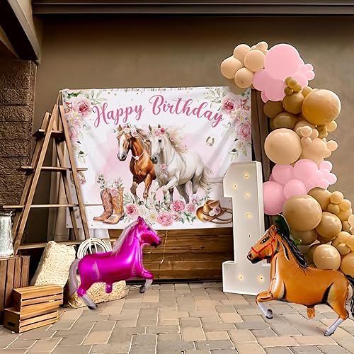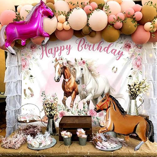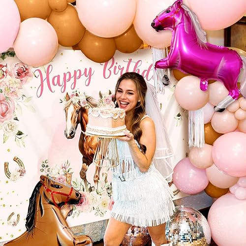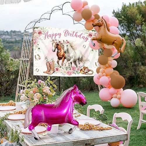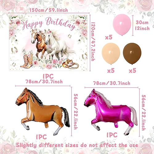 JeVenis 18 pcs décorations de fête pour chevaux ballons pour la course de chevaux toile de fond pour photos de filles sur le thème du cheval fournitures de fête d'anniversaire pour cow-girl de l'ouest