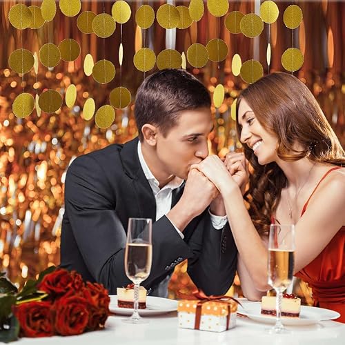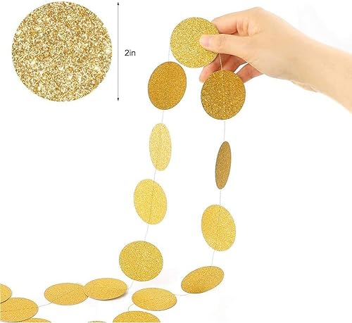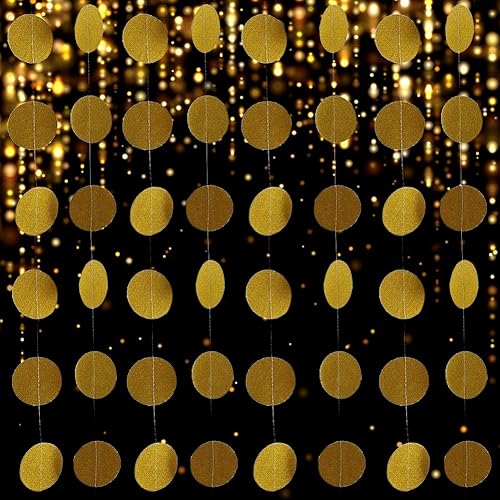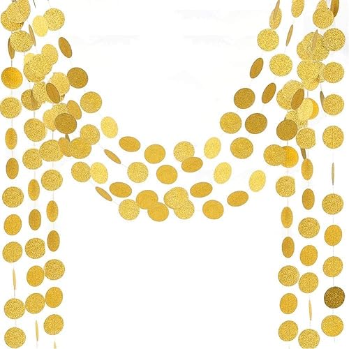 Yuragim Lot de 4 guirlandes rondes en papier dorées à paillettes - 4 m - Décoration d'anniversaire à suspendre - Décoration de fête des années 20 - Pour anniversaire, fête prénatale, mariage (doré)
