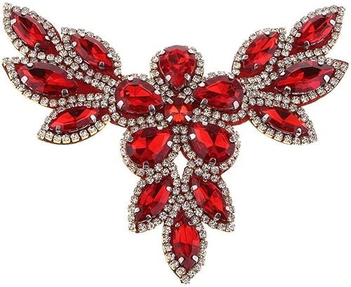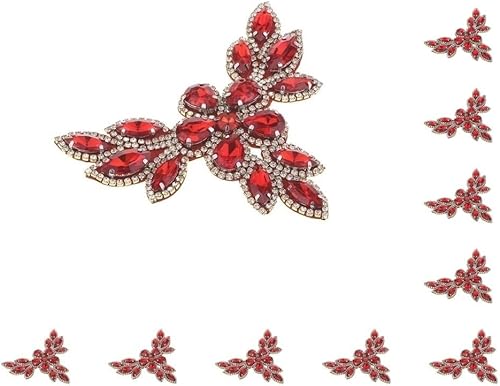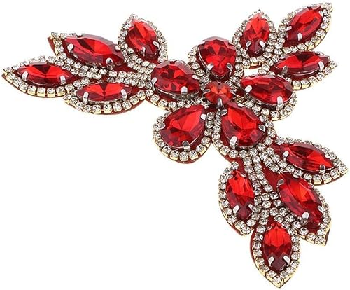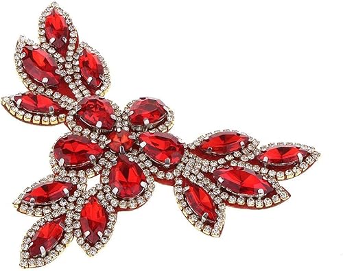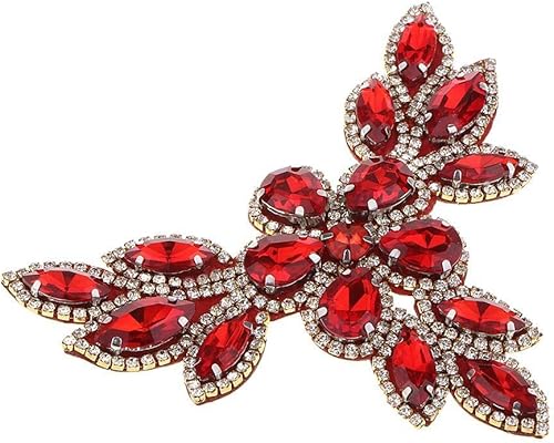Appliques strass à coudre avec fond transparent à dos plat Rouge