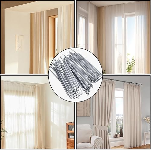 70 Pièces Crochets Rideaux en Acier Inoxydable avec 4 Dents, Crochet Rideaux, Crochets en Métal Robuste à Dents Profondes, Crochets de Rideau en Métal pour Pincer Les Plis et Les Rideaux Lourds