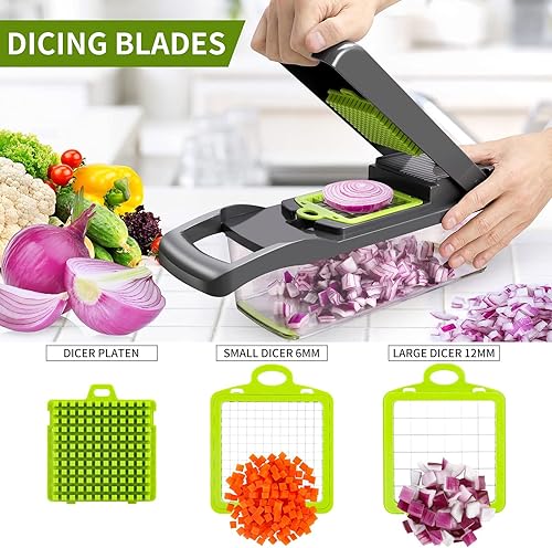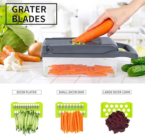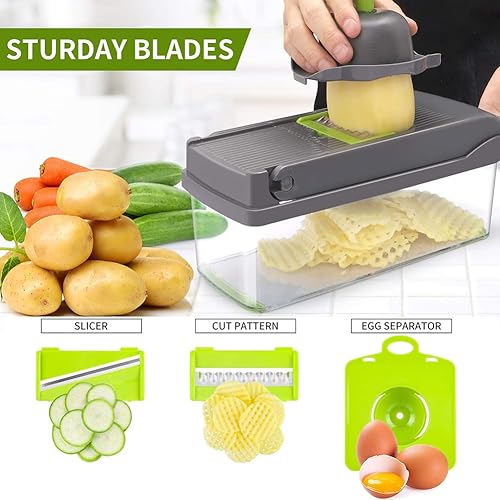 16en1 Coupe Mandoline de Cuisine, Manuel, Multifonctions à 8 Lames Pour Trancher, Couper et Râper Les Légumes et Frite